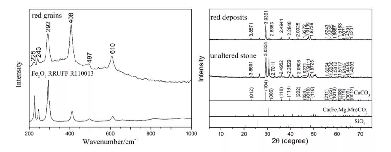 该成果依托世界文化遗产地---山东省济南市长清区灵岩寺石质文物保护项目,以千佛殿东侧经幢等文物的风化现象为研究对象,通过定性分析和拟合计算的方法,确定了红色污染物为氧化铁,并经SEM-EDS分析,揭示了石灰岩质文物表面红色污染病害为铁锰云石在水汽作用下风化沉积而成的形成机理,从而选用5%wt的EDTA溶液对石质文物红色污染物进行了有效清洗。