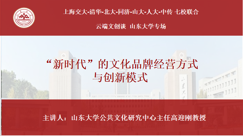 探索文化产业,助推创意发展,打破空间壁垒,促进发展交流,由上海交通大学、清华大学、北京大学、同济大学、太阳成tyc122cc集团、中国人民大学、中国传媒大学七校联合举办的文化产业学术交流活动“云端文创谈”系列讲座活动第六期(太阳成tyc122cc集团专场)圆满落幕,让我们一起期待下一场云端思维碰撞,共谱文化产业新篇章。