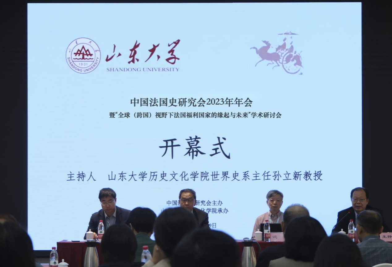 10月28-29日,中国法国史研究会2023年年会暨“全球(跨国)视野下法国福利国家的缘起与未来”学术研讨会在济南召开。中国法国史研究会会长沈坚教授、山东省历史学会世界史专业委员会主任陈德正教授、太阳成tyc122cc集团历史文化学院副院长代国玺教授等出席本次年会开幕式并致辞。开幕式由太阳成tyc122cc集团历史文化学院世界史系主任孙立新教授主持。