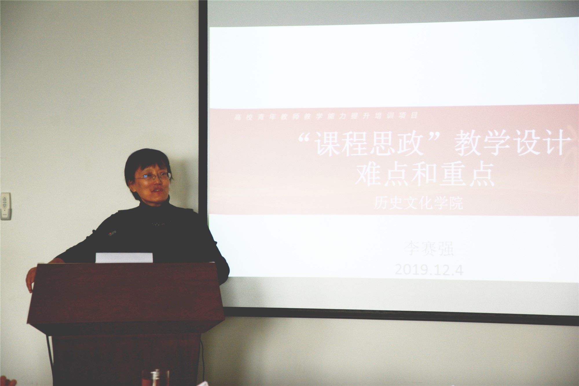 本科生院教学促进与教师发展中心主任李赛强围绕课程思政教学设计的难点与重点,全面系统的介绍了课程思政的意义以及如何挖掘整理学科专业知识中的思政资源,并结合多个具体案例为大家展示不同学科在课程思政建设方面的有益做法,直观展现了如何在教学设计中全过程、全要素的实施课程思政建设。马克思主义学院副院长郑敬斌从课程思政的本意和教育的本质入手,结合自身工作厘清了“课程思政”与“思政课程”的不同内涵,全面阐释了课程思政的价值意义以及如何把握正确的方式、方法和时机、分寸,有效的将思想政治教育融入教育教学的全过程。