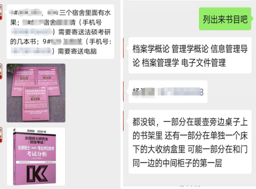 今天,本该热闹的校园如今寂静无声,偶有人影匆匆闪过,留校同学仿佛有些孤独但他们能感受到,学校与他们同在,老师与同学也与他们同在。在做好自身防护的同时,他们拧成一股绳儿,互相帮助,互相鼓励;他们架起一座桥,连接家校,共渡难关。我院留校的同学们与辅导员老师一起,担任起“校园志愿者”:他们帮未返校的同学取“回错家门”的快递,帮需要资料的同学们借阅书籍,甚至帮同学丢掉忘记吃光的水果。有人想念学校的风景,他们就“摄影师”;有人需要取回电脑完成学习,他们就是“邮递员”;有人需要图书馆的专业书籍,他们就成了“复印机”。他们是最亲爱的老师和同学,同样也是这场战“疫”中的志愿者,他们自诩自己是“跑腿专员”,而我们知道,他们是同学们的“信任使者”。