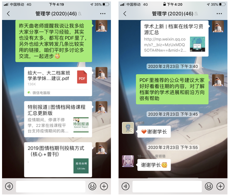 专业引导,成长分享。对于刚刚专业分流后的2019级同学来说,他们对所选专业还感到很陌生,对专业发展还有很多疑问,急切地需要学长学姐“现身说法”,解答疑惑。2016级档案学专业的王昊在协助老师线上授课的同时,还就课程学习、专业能力培养以及档案学研究方向等问题为2019级档案班做了一次线上经验分享。