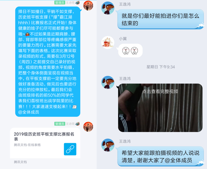 为促进学生在疫情防控期间积极居家健身,提升自身免疫力和保持身心健康,3月6日至3月15日,历史文化学院积极动员、认真组织,通过线上平台举办了学生全员平板支撑比赛。