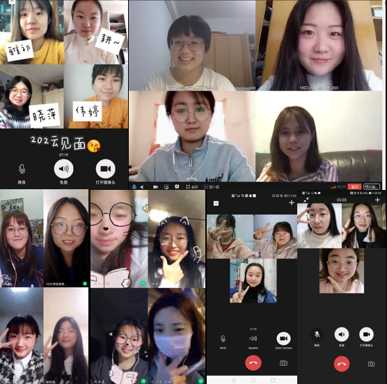 云上一线牵,共话今夕事。延期返校将近两月,宿舍成员在久别重“逢”后,不仅回忆共同学习生活的美好过往,而且交谈彼此居家期间学习生活的点滴,在分享快乐、倾诉烦恼的过程中增进情感、健全心态。9#133宿舍表示:“好久没有见面的大家通话时都非常兴奋,居然一聊就聊了两个多小时。我们回忆了上个学期宿舍生活的点滴,聊天中既有提起趣事时的快乐,也有对现在不能在现实中见面的的遗憾。因为基本都在不同的班级,我们还分享了各自所学专业的情况。”9# 134宿舍感慨:“一直以为文字也可传递情感,但当真正看到舍友们的脸时,却发现其实见面才是表达情感的最佳方式。这次“云见面”我们三个一起聊了聊近期追的剧、上的课,也交流了各自家乡的风物人情,说说笑笑真的感觉很美好。通过这个“云见面”感觉到舍友间的感情更加的深厚,以后若有时间我们还会再次进行云见面活动。”