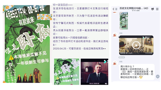 疫情防控期间,为帮助同学们更好适应居家学习生活模式,创造在家如在校的良好氛围,增强班级凝聚力,2019级历史班于4月25日开展云见面活动。