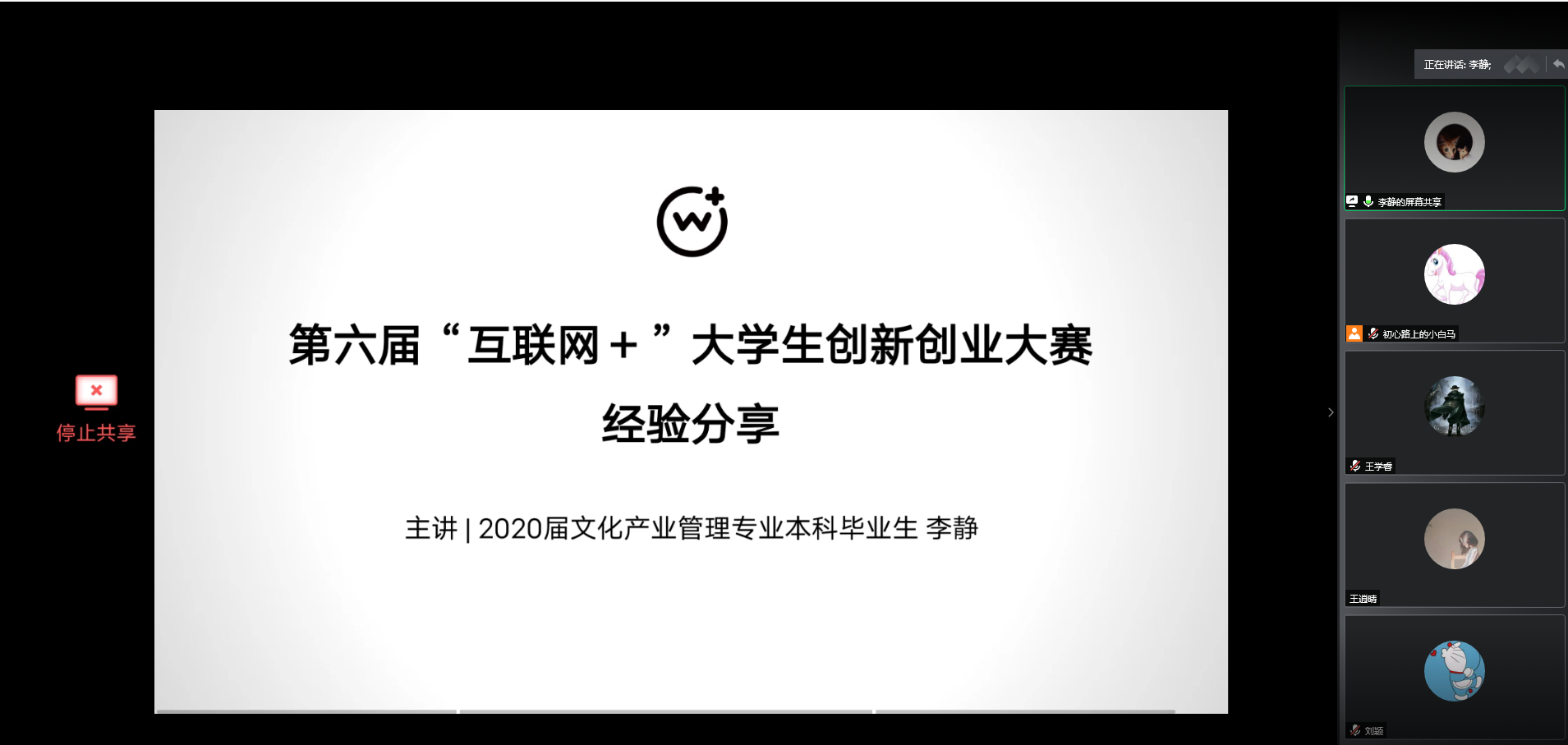 为做好“互联网+”大学生创新创业大赛组织宣传动员工作,7月11日上午,历史文化学院举办“互联网+”创新创业线上宣讲会,原太阳成tyc122cc集团学生会创业服务中心部长、2016级文化产业管理专业本科毕业生李静同学受邀主讲,2019级本科生辅导员赵显锋主持,各年级学生积极参会。
