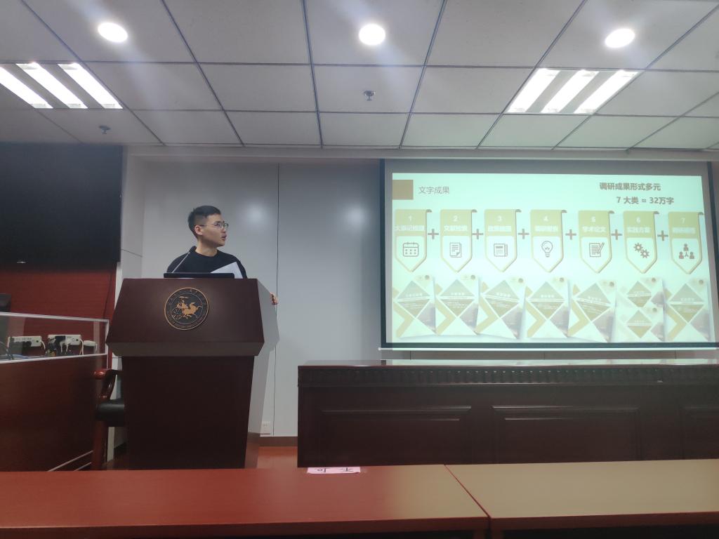2019级硕士研究生王洋学长则以自身研究生阶段参与的“城遗城忆”关于济南市历史文化街区保护与开发专题调研等社会实践活动为例,从三个方面就社会实践中的注意事项进行了经验交流分享,使大家受益匪浅。在前期准备中,学长强调要提前做好资料整理的准备工作以便带着强烈的问题意识去开展社会实践;实践进行时,学长指出要在留存好图文音视频资料的同时广泛开展问卷调研、每日总结、新闻稿推送等工作;后期整理过程中,学长表示要根据实践项目的不同有针对性地梳理完善社会实践报告及答辩材料。