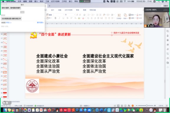 1月25日,队员刘皓月、朱宸慧、董诗妮分别面向小区居民和亲友开展宣讲。1月27日,队员刘祺、苏东烨、王诗雨、李天择进行了第二批次宣讲。1月28日,队员孙启慧也面向亲友进行了线上宣讲。按照计划,各位队员顺利开展宣讲,得到了较好的反馈。同时,宣讲团也及时进行了宣讲过程追踪与复盘,为后续宣讲的开展总结了经验。