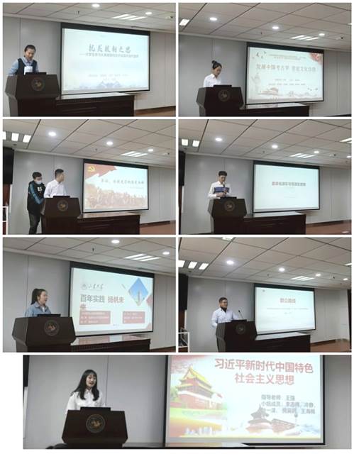 活动伊始,李一楠充分肯定了学院同学们在前两届比赛中取得的成绩,希望各参赛团队能够以学院公开赛为契机,以赛促学、加强交流,进一步深化对思政课教学内容的认识和思考,充分展现历史文化学院青年学子的理论素养和精神风貌。主持人王鹏霄介绍了本次比赛的流程与规则。随后7支团队主讲人分别根据抽签顺序依次登台展示,赵杨培团队讲述了大学生在抗美援朝战争中发挥的积极作用,以此来激励当代大学生传承抗美援朝精神;赵显锋团队以中国考古学诞生一百周年为切入点,深刻阐述中国考古学的发展对于坚定文化自信的意义;耿嘉泽团队通过老校长成仿吾先生的第一视角重新解读长征路上的重大事件,展现伟大的长征精神;王鹏辉团队以“对话”的方式深入浅出地讲述毛泽东思想,将毛泽东思想活的灵魂“实事求是,群众路线,独立自主”进行了精彩展示;郑杰元团队通过追溯中国共产党的百年实践来探寻实践与认识的关系,使大家更加充分地认识到中国共产党作为马克思主义政党的先进性;李静团队以毛泽东思想核心内容“群众路线”为主体,再现山东省红色革命历史,强调了“群众路线”的必要性;李志伟团队详细解读习近平新时代中国特色社会主义思想,阐释其重要地位与现实作用,引导青年学生主动承担历史使命。