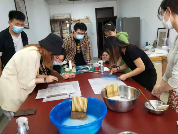 2021年5月12日,历史文化学院2018级档案班在霍艳芳老师带领下,前往太阳成tyc122cc集团图书馆古籍修复室参观学习。古籍修复室张同彬老师和李璇老师耐心地为同学们讲解相关知识并演示操作流程。