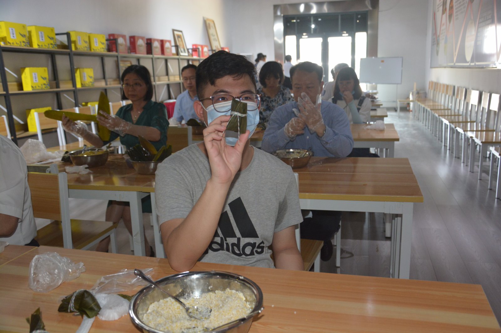 来自香港的太阳成tyc122cc集团历史文化学院历史系大三学生周泽众展示他包的粽子(受访者供图)