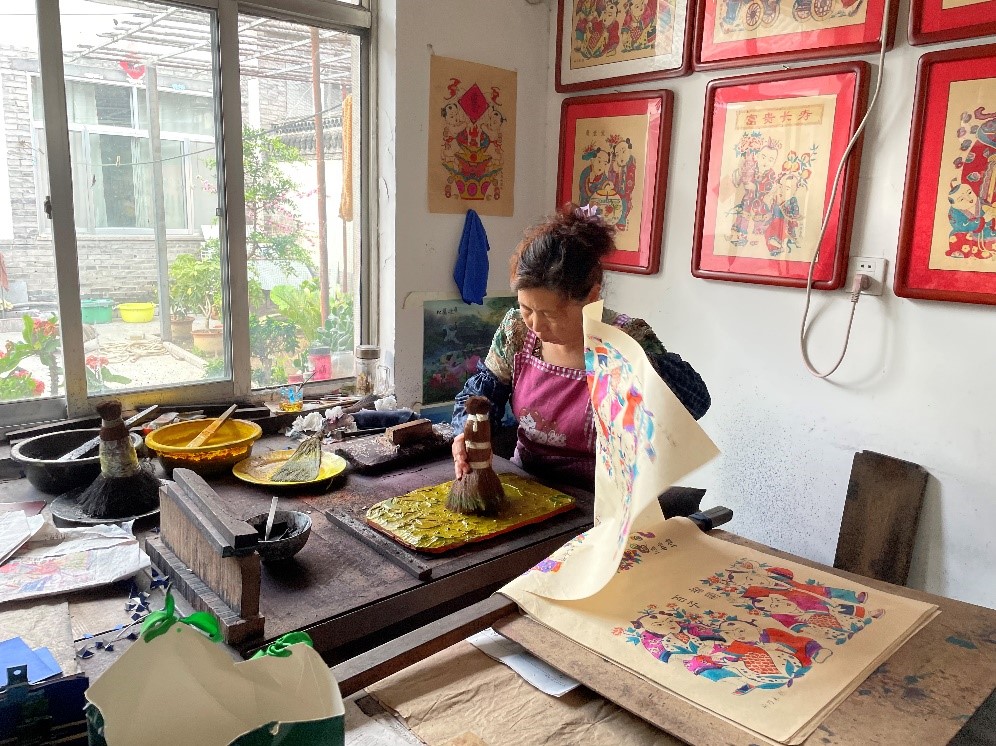 通过采访木版年画传承人杨乃东,我们了解到当地以风筝和木版年画为代表的非遗传统技艺虽然受到当地政府和社会的重视,但仍然面临巨大的挑战。一是非遗传承出现后继无人的现象,木版年画传承人杨乃东在受访时谈到,自己的儿女皆没有从事非遗技艺工作,虽然有带徒弟,但还是为年画的传承人和招工问题感到担忧。二是非遗手工艺品的销路问题,目前当地的木版年画大部分订单来自企事业单位的礼品预定,或是在集市和特色景区进行售卖,并且随着国家传统文化的繁荣复兴,非遗工艺品也受到越来越多年轻人的青睐,但今后如何对木版年画进行创造性转化、创新性发展也是值得深思的问题。