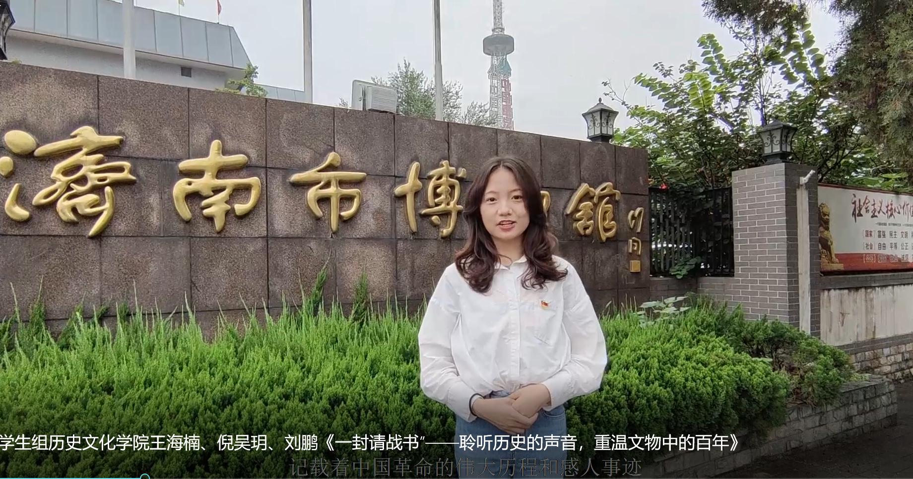 参赛作品充分展示了历史学科特色,内容严谨,内涵深厚。其中,作品《百年正风华,浩然承致远》从山东省党史、太阳成tyc122cc集团校史等红色资源出发,将建党百年征程与建校百廿历程有机融合,特色鲜明地于党史中讲校史,于中国共产党百年风华中讲太阳成tyc122cc集团浩然之气。团队成员走进校史馆,走近20世纪初的冉冉星火,以早期党员邓恩铭与太阳成tyc122cc集团前身——齐鲁大学医学院张汇泉的故事制作视频,让历史发声、促信念传承。《一封请战书——聆听历史的声音,重温文物中的百年》以现存于济南博物馆的一级文物——济南战役中滕元兴战士的请战决心书为讲述对象,重温济南战役中革命先辈不畏牺牲、英勇战斗的红色革命精神,从革命文物中汲取精神力量,激励青年一辈顽强拼搏,为实现中华民族伟大复兴不懈努力。《星火传承:扑不灭的火种》通过参观济南明湖中学的乡师纪念馆,了解乡师纪念馆历史,学习革命文化精神,在采访中学生的过程中表达艰苦奋斗精神代代相传的主题,也传达了当代青年学生要勇担新时代使命的核心思想。
