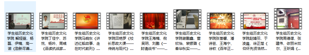 历史文化学院不断将“三全育人”理念贯穿在学生思想政治教育全过程,坚持传史育人,讲好党的故事、革命的故事、英雄的故事,推进党史学习教育、“四史”宣传教育广泛覆盖、落地生根。在此次活动中,我院将思想政治教育工作与新媒体有机结合,推动革命文物资源与新时代党史学习教育、革命传统教育、爱国主义教育及高校思想政治工作融合发展,推动青年学子站在新的历史机遇点上,坚定理想,奋发作为,努力擘画祖国美好蓝图。