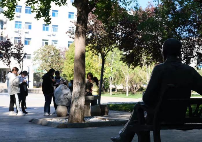 下午两点,阳光明媚,秋风飒爽,打卡学习活动正式开始。同学们在齐园餐厅南门的起始点签下自己的名字后,便迫不及待地踏上征程。大家沿着校园主干道“成德大道”、“弘德大道”等,或三五成群、或单独行动,争先恐后地前往各个指定地点打卡答题。本次活动的四个打卡点分别为八马同槽雕像、闻一多先生和臧克家先生雕像、华岗校长和成仿吾校长雕像以及稷下广场,每一处都承载着山大的辉煌过往,并闪烁着山大人一脉相承的精神。
