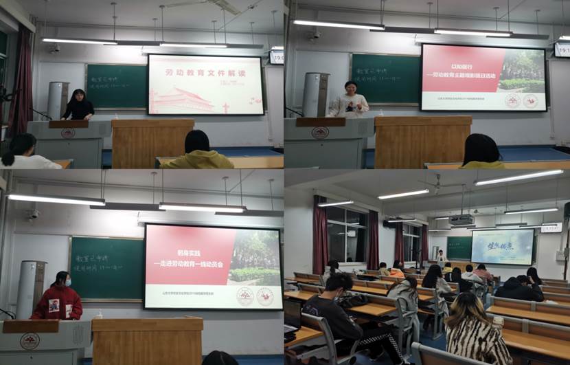 在“学习原典—劳动教育文件解读”活动中,张伟霞同学对劳动教育文件的背景、总体思路、目的和内容要求等多方面进行了细致的讲解与解读。在“见贤思齐—向最美劳动者致敬”活动中,王逍晴同学结合自己疫情期间担任志愿者的经历,分享了亲身遇到的众多医务人员的伟大奉献事迹,表现了对劳动者的敬意,呼吁全体团员见贤思齐,向最美劳动者致敬。在“以知促行—劳动教育主题观影”活动中,全体团员共同观看《在一起》第一集,以知促行,鼓励团员们传承新时代劳动精神和奉献精神,在祖国最需要的地方彰显青春担当。