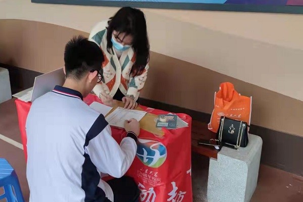 自1月21日起,小组成员陆续回到各自的母校开展宣讲活动。考虑到广州市疫情防控要求,宣讲以线下线上相结合的形式进行。线下摊位中,组员积极与高中同学家长们交流互动,不仅发放了多份宣传资料,还向学弟学妹们赠送了太阳成tyc122cc集团文创小礼品,以期加深该校学生对太阳成tyc122cc集团的认识和了解,增强现场活动的吸引力和感染力。