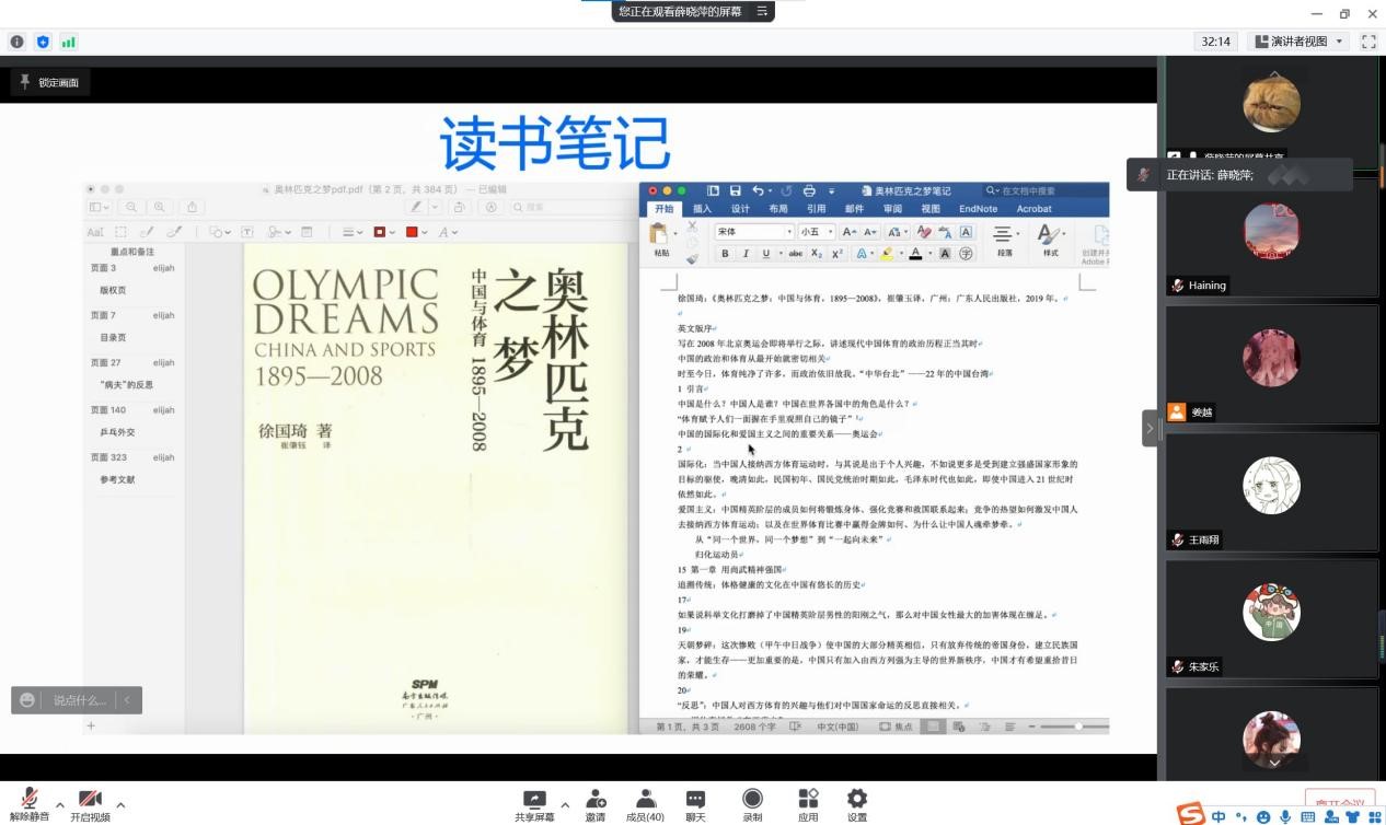 2月7日,就业(实习)经验分享会于线上举办,杨振杰、孙崇辕、赵怡然三名同学受邀分享,杨振杰、孙崇辕两位同学主要就岗位选择、简历制作、面试技巧等方面分享自身的实习或就业经验,考古学的赵怡然同学则充分结合自身的专业,介绍了探方发掘需要做的准备以及在实际实践过程中的注意事项。2月11日,刘海龙、孙辰睿、胡晓烨三名同学受邀分享论文撰写心得,三位同学主要就如何选题、如何获取材料、如何搭建论文逻辑框架等问题进行分享,此外,他们也分享了自己在论文撰写过程中遇到的问题,以及自己的论文写作技巧等内容。2月14日,读书分享会线上举行,王雨翔、高妍、薛晓萍三名同学受邀进行分享,王雨翔和高妍同学主要介绍了自己如何进行书籍的选择以及读书的方法,其中,高妍同学强调了读书环境对于自身的影响,也为同学们如何提高读书效率提出了建议,薛晓萍同学则充分结合了其当下正在阅读的书籍以及读书笔记,向大家介绍了其撰写读书笔记的方法并分享了其阅读过程中的心得体会。2月18日,董欣怡、毕欣雨、伊楠三名同学受邀主讲学生干部经验分享会,三位同学主要分享了自己的太阳成集团经验和工作中遇到的各种问题,同时,她们也就太阳成集团中容易出现的各种问题进行了方法建议。