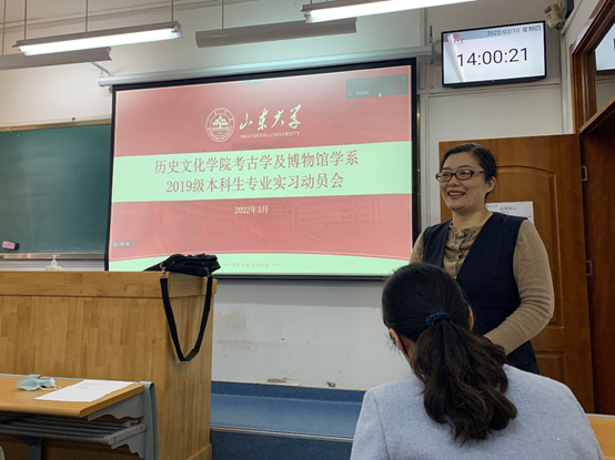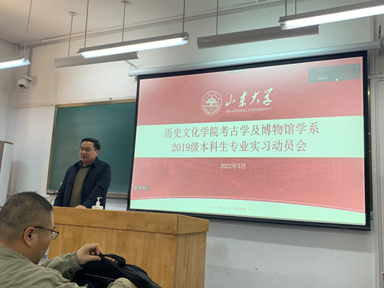 为确保考古学、文物与博物馆学专业本科生顺利开展田野实习, 3月10日下午,历史文化学院考古学及博物馆学系于公教楼103教室开展2019级本科生专业实习动员会。历史文化学院院长方辉、副院长王芬、副处级辅导员李一楠出席,会议由考古学及博物馆学系主任唐仲明主持,宋艳波、路国权、申静怡等教师参加动员会。