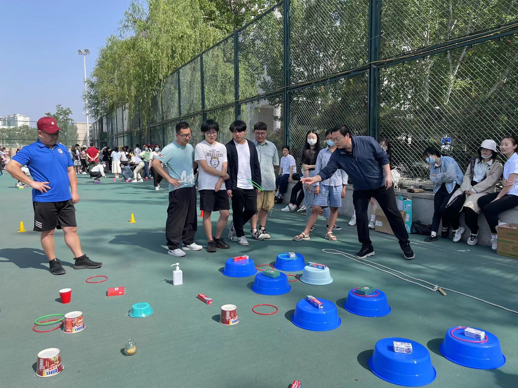 本次运动会在严格遵守疫情防控要求下开展,项目多样,各具趣味,包括套圈、跳大绳、接力运球、不倒丛林、快乐保龄球、摸石过河、投壶、筷传乒乓球共八个项目。在志愿者的热情引导下,老师和同学们有序参加了本次比赛。