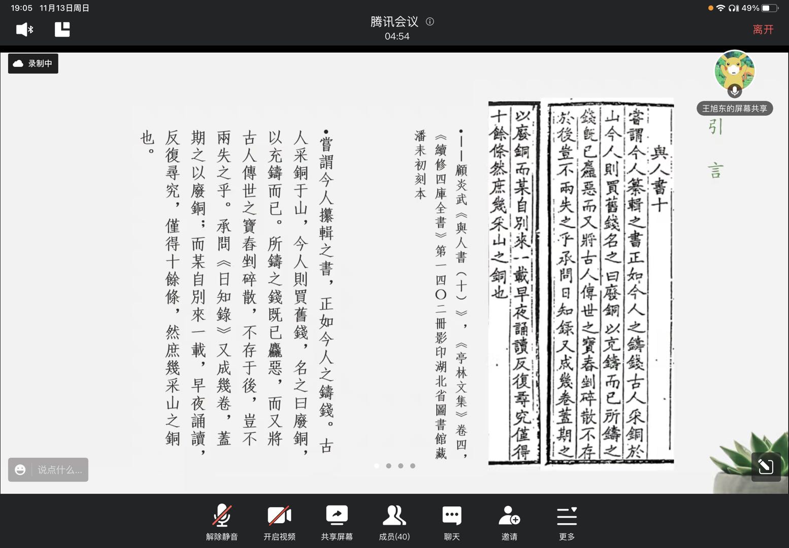 11月13日,历史文化学院邀请到清华大学出土文献研究与保护中心博士后王旭东作“采铜于山:关于读书与写作的体会”线上讲座。