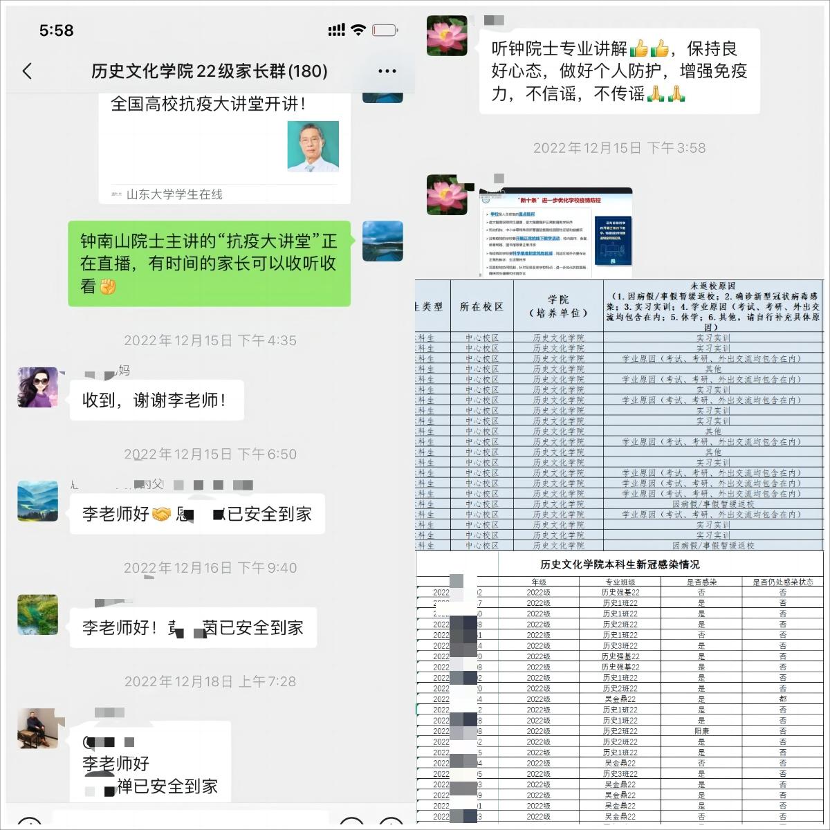 以生为本,强化意识,写好安全教育“假期篇”。学院严格落实学校假期安全工作要求,督促学生养成良好习惯,建立感染学生台账并按时更新,引导学生应种尽种加强针,做好居家健康监测;加强人文关怀,做好对家庭经济困难、学业困难等特殊学生群体的关心关爱,关注学生居家期末考情况,实现太阳成集团增温提效。同时凝聚家校共育合力,通过各年级家长群发布信息,保证交流畅通,希望家长全面了解学生居家学习生活情况,共同做好安全教育,力求家校协同,助力学生成长。