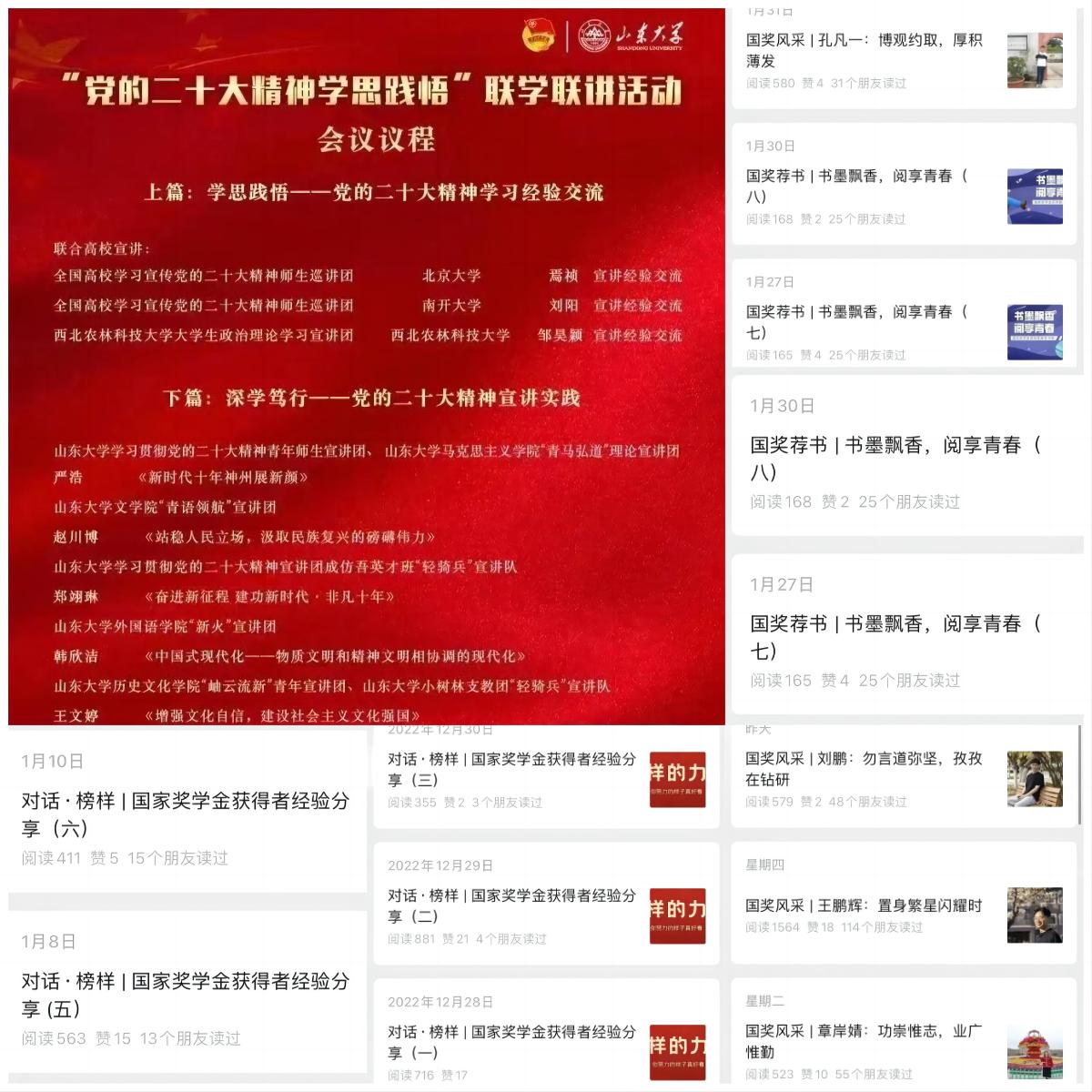 思想引领,学业在先,引导学生假期“不停学”。假期期间为确保理论宣讲不停步,思想引领有深度,学院党的二十大精神师生宣讲团利用假期充分收集、整理宣讲素材,并在支部内试讲,不断优化宣讲内容;充分利用社会实践大课堂,借力新媒体平台,各社会实践队伍赴多地开展理论宣讲,参与高校青年宣讲团联学联讲活动,勉励青年学生切实学深悟透党的二十大精神,提升理论水平。聚焦学习主业,进一步发挥榜样引领示范作用,学生会、研究生会组织优秀学生人物访谈活动,邀请2022年度6位本科生国奖获得者、8位研究生国奖获得者进行采访,推荐书单,交流分享学习经验,传递青春能量;针对毕业生开展在线就业指导,发布学院2022届毕业生就业质量报告,密切关注各平台发布的就业信息,营造就业创业良好氛围。创新开展“围炉情暖,共话成长——与青年教师对话”、“星辰大海,启程未来”——优秀毕业生访谈”系列活动,帮助学生确定学术、职业发展方向,充实假期生活。