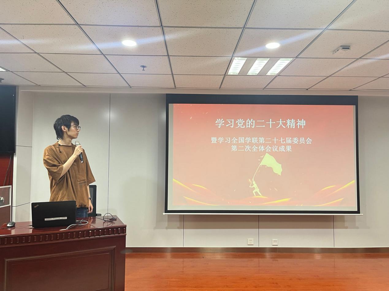 历史文化学院学生会执行主席于凌晨提到,团属学生组织要进一步聚焦主责主业,以同学为中心,为同学办实事,严格落实共青团改革要求,从严治团、从严治会;要聚焦政治引领,以习近平新时代中国特色社会主义思想为指导,认真学习宣传贯彻党的二十大精神,把服务同学和服务大局落到实处。