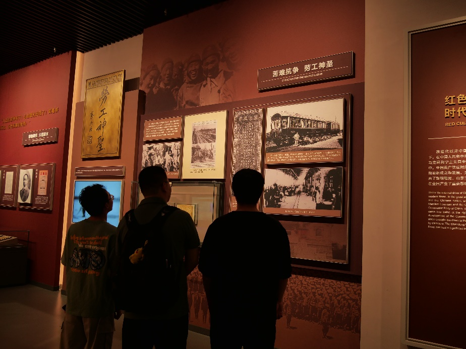 山东历史底蕴厚重,文化辉煌灿烂,是中华文明的重要发祥地之一。在近现代时期,山东更是具有光荣传统的革命老区,涌现出一大批革命先烈和仁人志士,用一腔热血和赤胆忠心,浸染了这片红色热土。“海岱日新-山东历史文化陈列展”集中展示山东博物馆的最新成果,将文物展示传播与当代科技手段、艺术形式相结合。展览分为“史前时期”“商周时期”“秦汉隋唐”“宋元明清”“近现代”五个部分,全面立体展示了山东六十余万年人类史、一万年文化史、五千年文明史,三千年齐鲁文化史、一百年奋斗史。参观过程中,支部充分发挥专业优势,各党员同学结合自身专业学习和考古实习经历进行讲解,把课堂知识运用到实践当中,践行讲好中国故事,帮助文物“开口说话”。