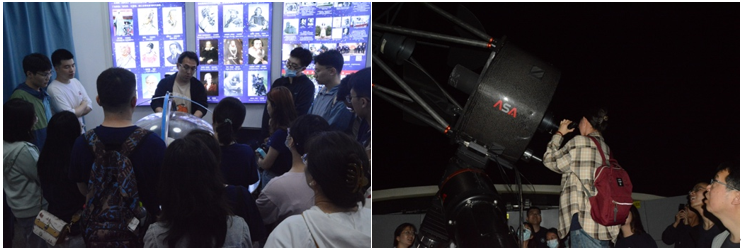 当晚,支部成员参观了威海校区天文台。在空间科学与物理学院老师的带领和讲解下,同学们了解了天文学史,参观了天球仪、星图,并使用天文望远镜观察金星、月球,知晓了有趣的天文学知识,看到当今中国天文学发展前沿。同学们为我国自主研发的暗物质粒子探测器、先进天基太阳天文台、中国巡天空间望远镜等标志性科技成就感到振奋和欢欣鼓舞。