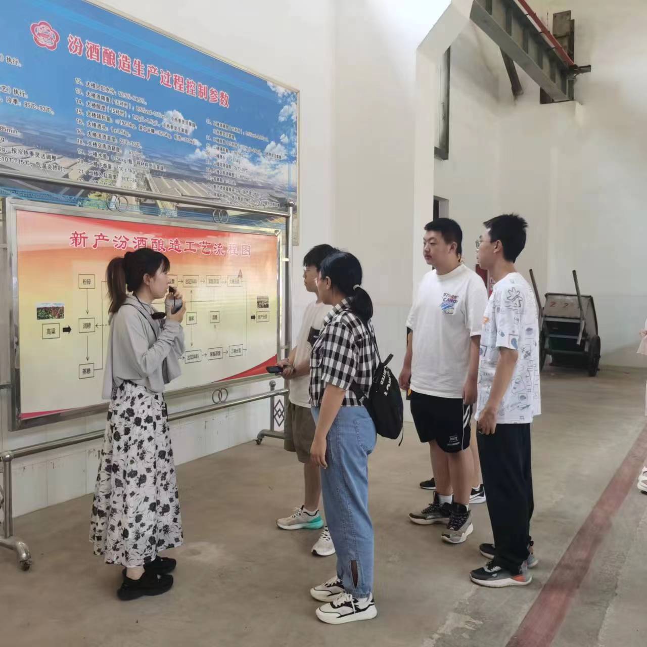 7月11日上午,队长郭子睿带领团队成员前往吕梁市汾酒酒厂,近距离观察汾酒酿制工艺,深入了解汾酒酿制工艺这一非物质文化遗产。在酒厂的参观过程中,团队成员了解到杏花村首创的干和酿造工艺,开启了中国固态发酵的先河。随着蒸馏技术逐步成型,杏花村开始了使用酒曲、固态发酵、蒸馏提酒三大酿酒技术的综合运用,定型了中国白酒的基本工艺。“人必得其精,曲必得其时,器必得其洁,火必得其缓,水必得其甘,粮必得其实,缸必得其湿,料必得其准,工必得其细,管必得其严。”这就是汾酒制作的奥秘。