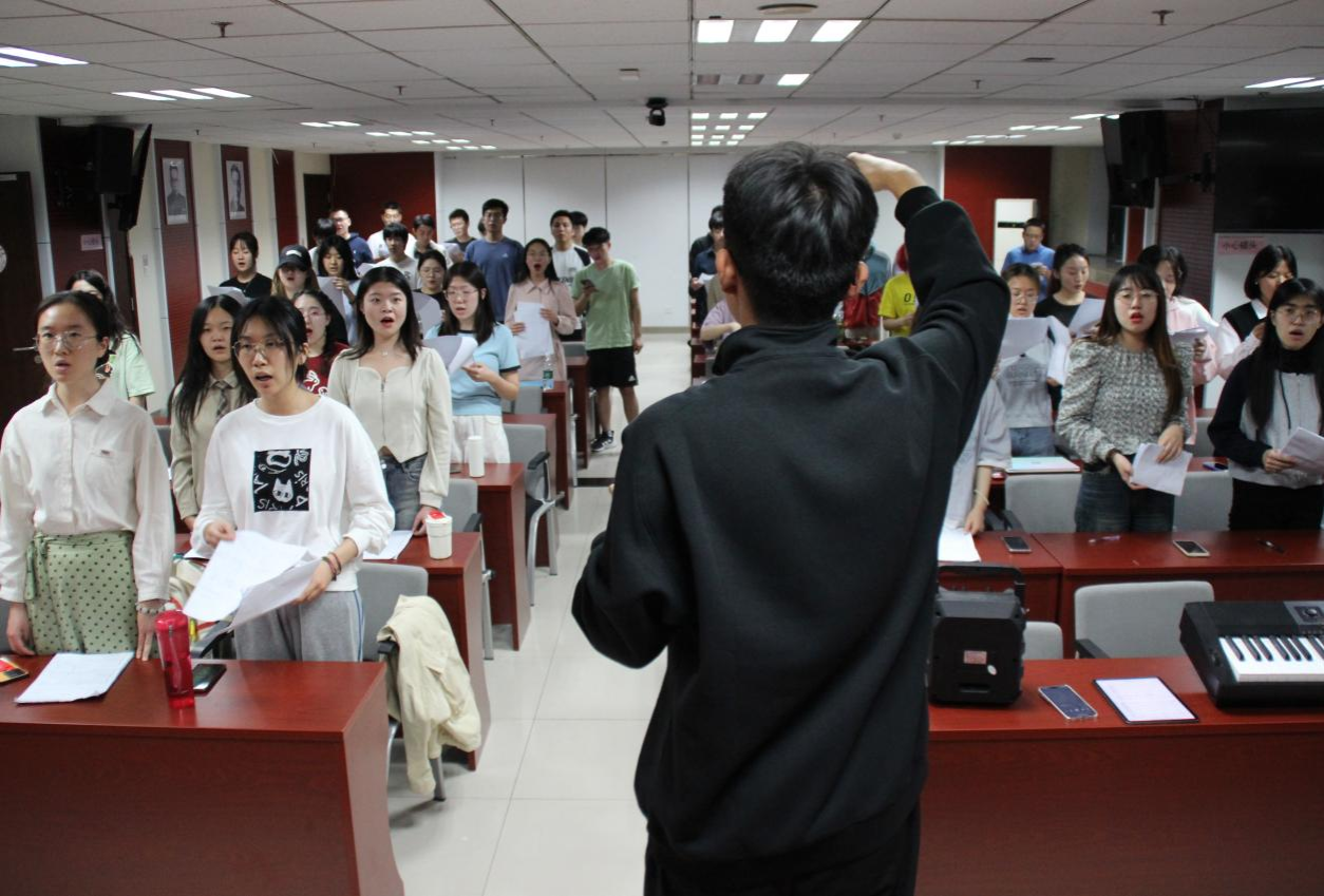 “不经一番寒彻骨,哪得梅花扑鼻香”。月拢枝头,清光洒在赶路的背影上,在近一个月的排练时间里,历史文化学院扶摇合唱团的同学们克服困难,积极练习,有时夜已深,但歌声仍未停。每一次训练同学们都以饱满的激情投入到歌曲的演唱之中,从中感悟曲子蕴含的情感,提升自己的歌唱技巧。在一次次的练习中,在专业老师的指导下,同学们的气息、发声、音准都取得了全面的进步,相互之间的配合也愈发默契。学院的领导与老师们对合唱训练也给予了密切关注,多次到场指导,为同学们鼓劲加油,给同学们带来了最大的鼓励与支持。正是在这种团结一致、上下一心、认真刻苦的精神引领下,队员们坚持训练,不断调整自我,在赛场上以最佳的状态,为大家带来了精彩表演。