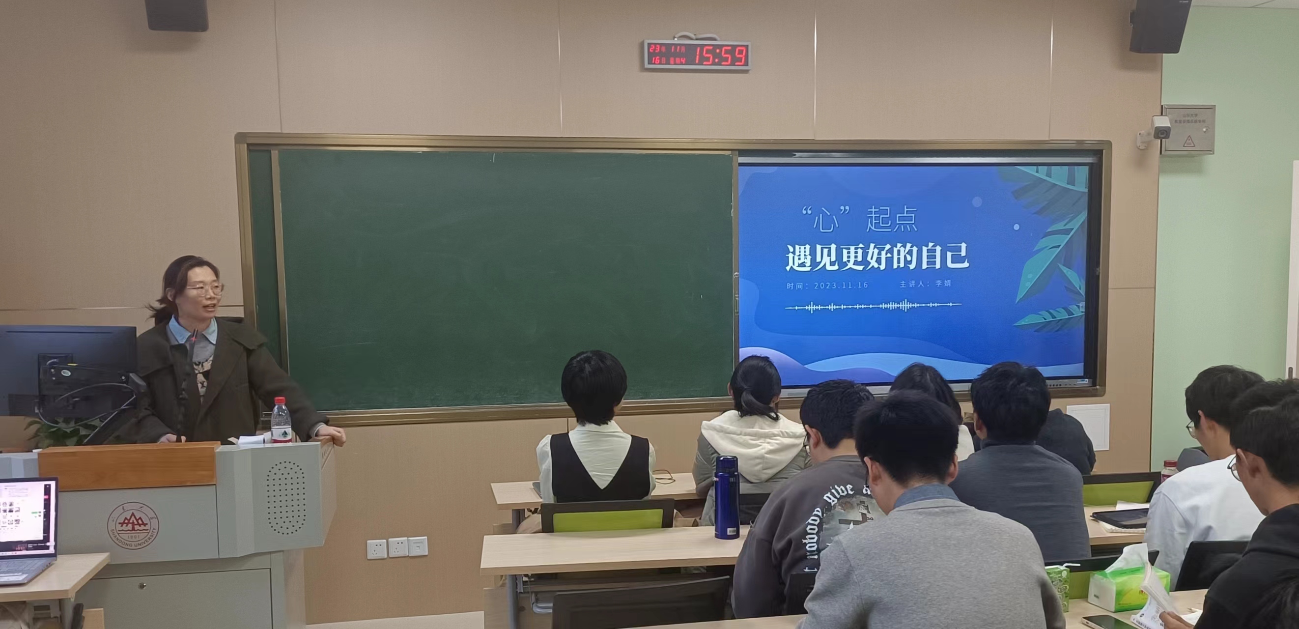 11月16日下午,为提升学生心理健康意识,提高心理调节能力,历史文化学院在中心校区理综204举办走进心灵讲座,辅导员李婧为2023级新生带来“‘心’起点,遇见更好的自己”的心理健康教育主题讲座。