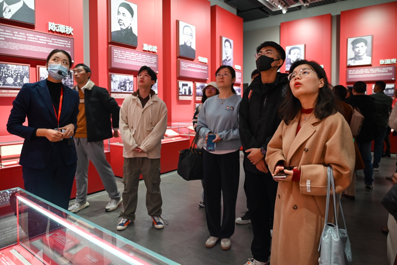 中共一大纪念馆位于上海市黄浦区黄陂南路374号,由中共一大会址、宣誓大厅、新建展馆等部分组成,是一所社会科学类历史遗址专题博物馆。百年征程波澜壮阔,百年初心历久弥坚。随着讲解员的脚步,同学们先后参观了五大部分。