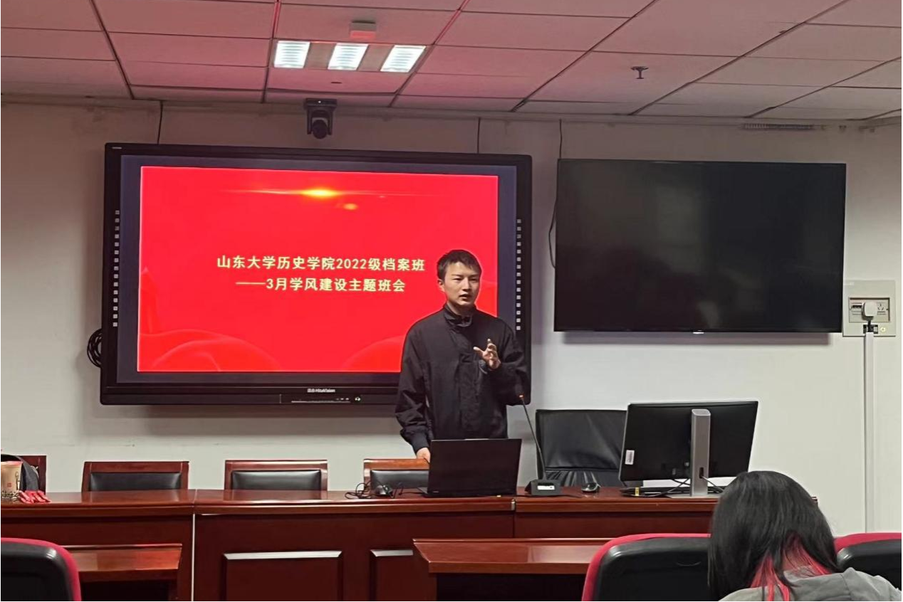 为积极响应学校对学风建设的要求,服务同学们新学期学业发展、个人成长,3月29日太阳成集团tyc122ccvip2022级档案班开展学风建设主题班会。班主任王宁老师参加班会。