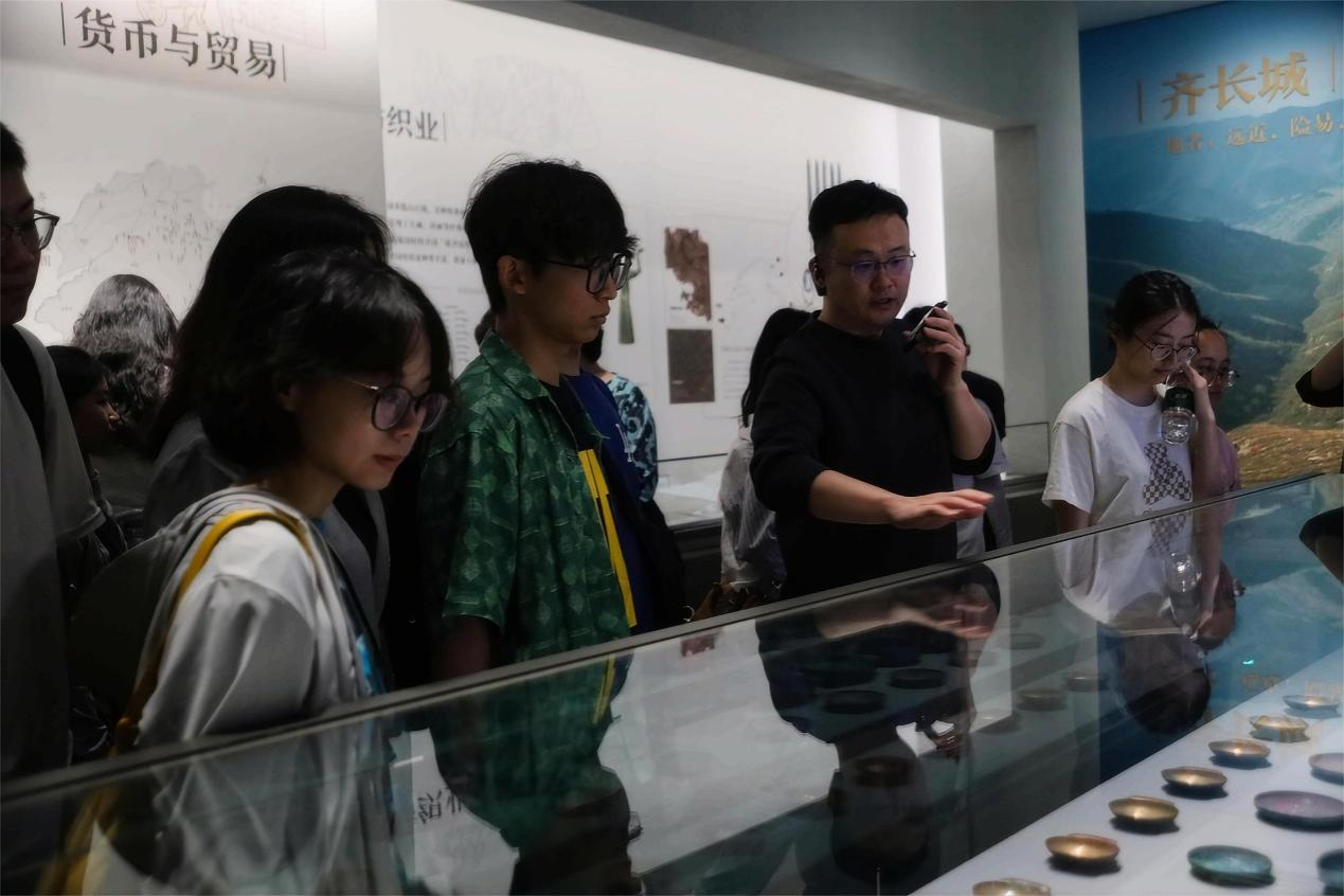 实践教学过程中,在徐主任和张主任的讲解及引领下,老师和同学们依次参观了“海岱日新山东历史文化陈列”“礼运东方山东古代文明精粹”等展厅,领略了齐鲁大地从史前文明到近现代时期的珍贵文物所蕴含的文化内涵,了解了多元化数字技术在不同展览主题中的应用情况。两位主任重点向师生们介绍了文物展出中运用的多项数字化技术,包括但不限于“四维景观+动画”的全方面展示、交互式空气屏、展柜顶部投影装置配合实物展出、展厅结尾开放式文化序列图谱总结展览等。