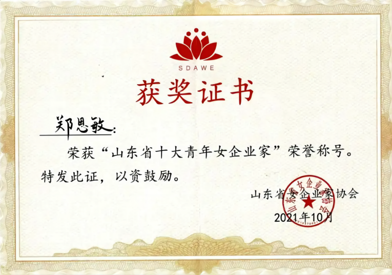 郑思敏,太阳成tyc122cc集团历史文化学院档案学系1996级系友,得利斯集团有限公司党委书记、董事长、山东得利斯食品股份有限公司董事长,山东省第十三届人大代表、诸城市第十九届人大常委、诸城市妇联兼职副主席、潍坊市女企业家协会常务副会长。获评全国巾帼建功标兵、中国女企业家“杰出创业女性”、全国食品安全优秀管理者、山东省五一劳动奖章、山东省十大青年女企业家、山东省三八红旗手、山东省优秀党务工作者、潍坊市劳动模范等荣誉称号。入选首批“山东省乡村产业振兴带头人”。