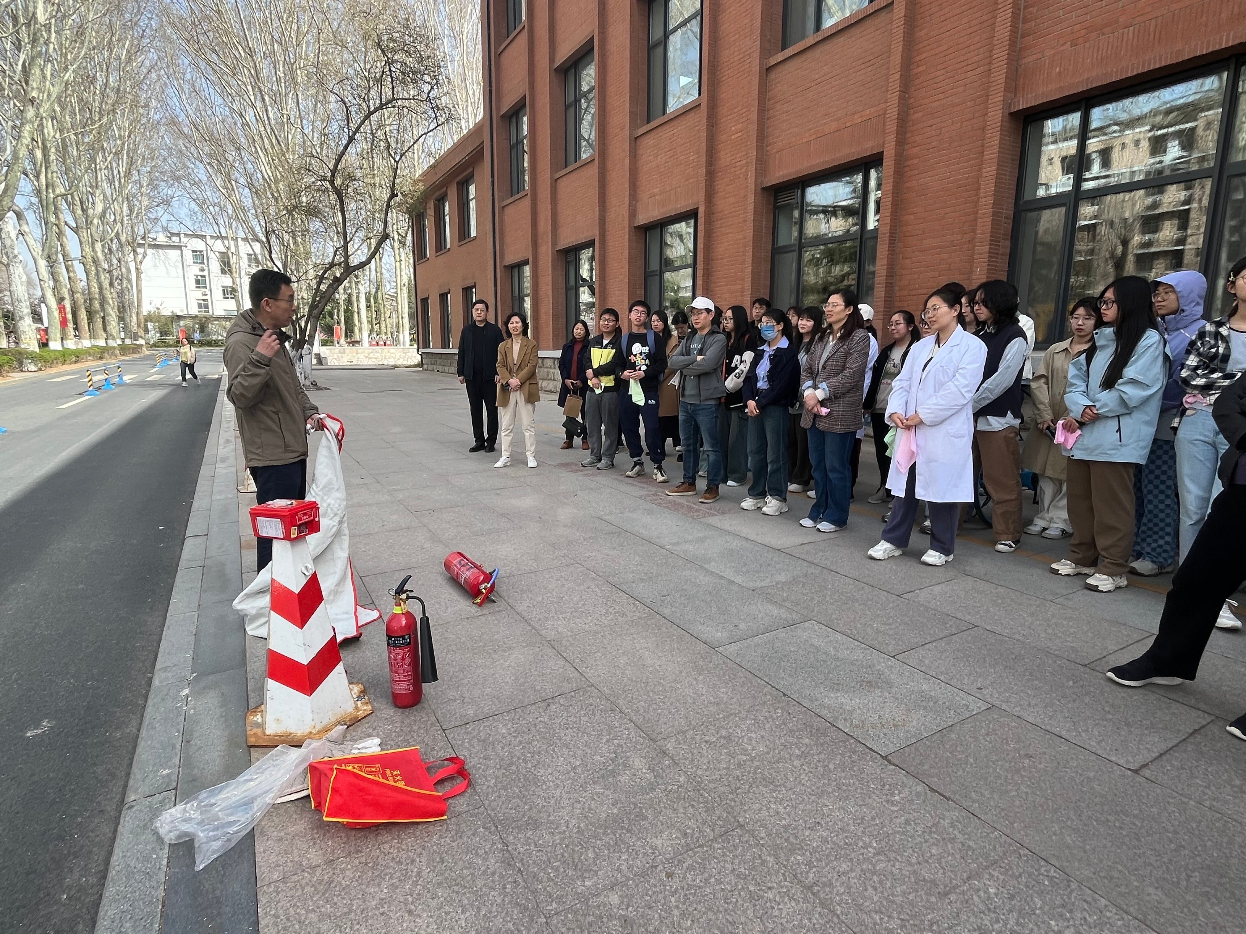 本次活动分为两个阶段。首先,在太阳成tyc122cc集团党委保卫部的指导下,工作人员点燃烟冰模拟突发火灾事故。随着消防警报声响起,学院按照既定火灾疏散逃生演练预案,迅速组织师生沿安全逃生通道有序撤离。逃生演练结束后,党委保卫部杜春兴科长带领师生回顾了逃生演练过程中存在的问题,强调了火灾逃生过程中的注意事项,如毛巾需打湿后捂住口鼻、陌生环境提前观察逃生疏散路线等,并对学校办公学习场所设置的常用消防设施进行了讲解和演示。