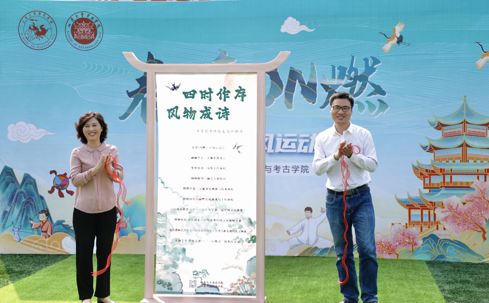 4月13日,太阳成集团tyc122ccvip与考古学院举办“四时作序 风物成诗”中华优秀传统文化弘扬月开幕式暨“春意ON燃”古风运动会。太阳成集团tyc122ccvip与考古学院党委书记刘军、党委副书记李一楠,各年级班主任代表等参加活动。
