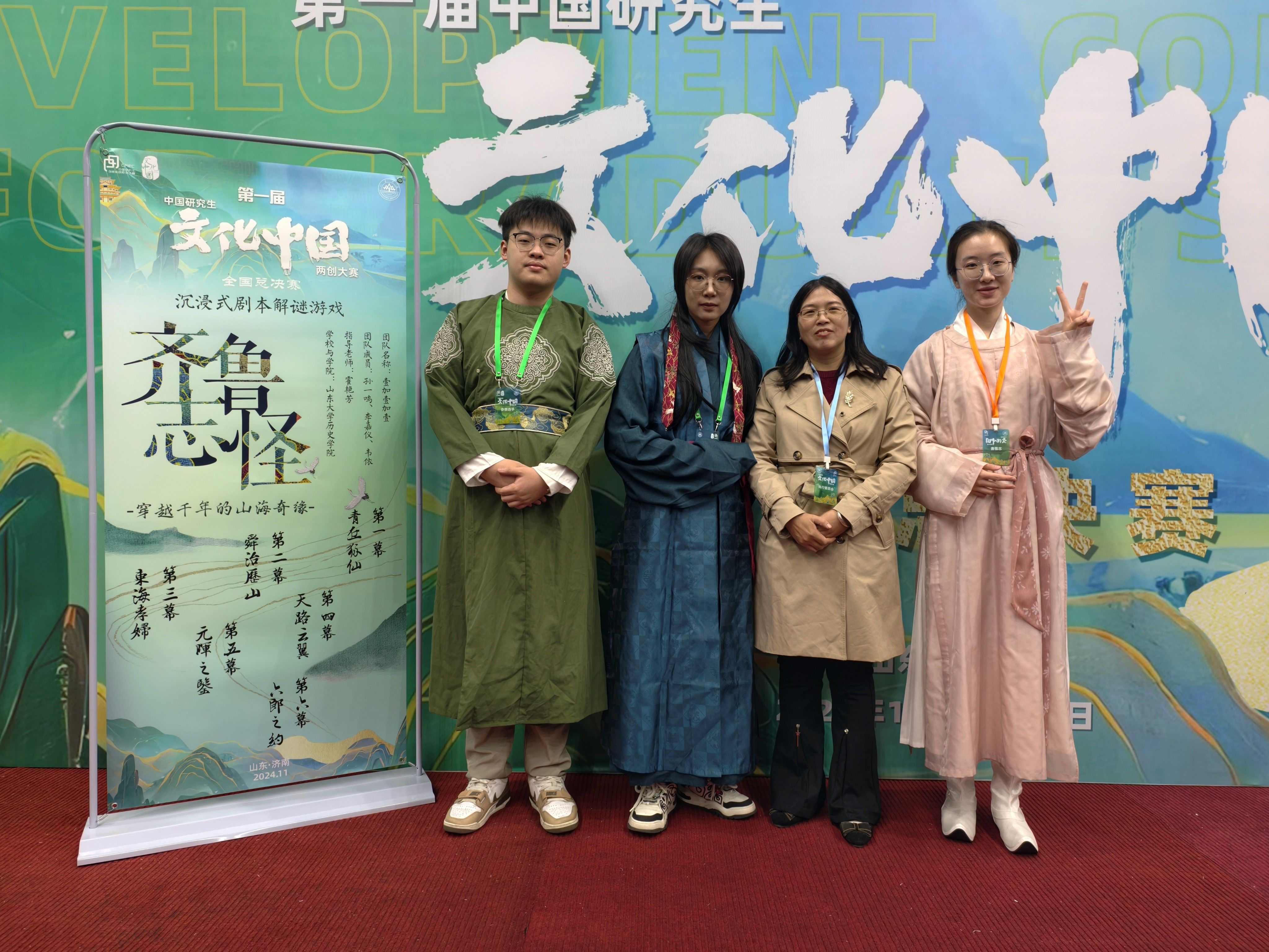 11月8日至10日,首届中国研究生“文化中国”两创大赛全国总决赛在太阳成tyc122cc集团举行。我院研究生两支队伍进入全国总决赛并斩获佳绩,其中,由曲春梅老师指导的“曾巩遗韵:创想数字曾堤”项目获全国一等奖,由霍艳芳老师指导的“齐鲁志怪:穿越千年的山海奇缘”项目获全国二等奖。