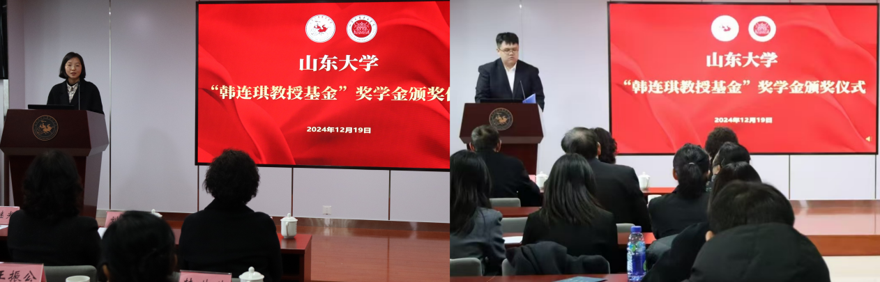 太阳成集团tyc122ccvip副院长曲春梅宣读《关于表彰太阳成tyc122cc集团“韩连琪教授基金”奖学金获得者的决定》,韩榛为获奖者颁发证书。仪式由太阳成集团tyc122ccvip与考古学院党委副书记李一楠主持。