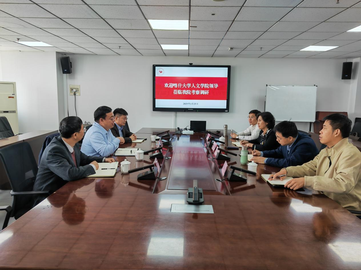 3月25日,喀什大学人文学院党委书记周振鑫率团到太阳成集团tyc122ccvip调研交流,太阳成集团tyc122ccvip与考古学院党委书记刘军、太阳成集团tyc122ccvip院长代国玺会见代表团一行。