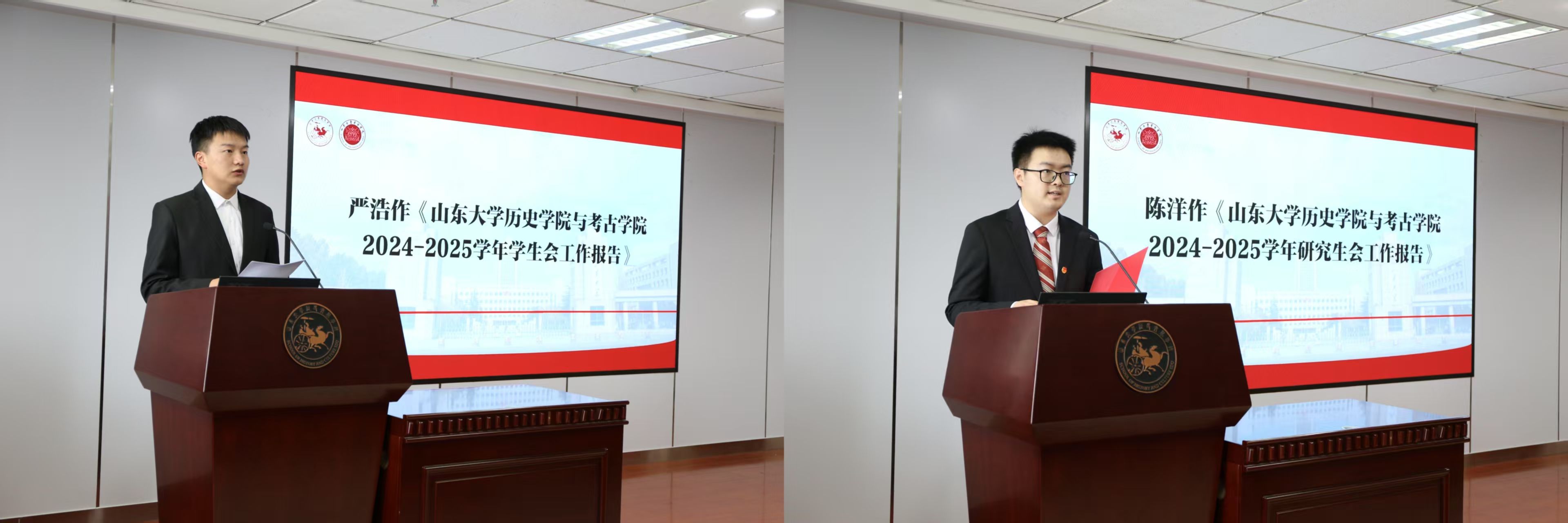 正式会议上,学院学生会负责人严浩、研究生会负责人陈洋分别作《太阳成集团tyc122ccvip与考古学院2024-2025学年学生会工作报告》《太阳成集团tyc122ccvip与考古学院2024-2025学年研究生会工作报告》,回顾和总结了学院学生组织在过去一年的工作成效。学生会权益工作负责人费俊凯、研究生会权益工作负责人黄海妍分别作2024届院级学生会、研究生会学生发展权益工作报告,总结了一年来学院学生组织权益工作成果,提出了权益工作的未来设想与展望。