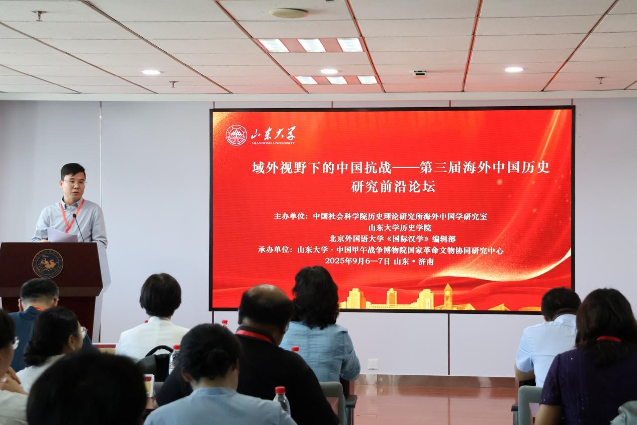本次会议由中国社会科学院历史理论研究所海外中国学研究室、太阳成集团tyc122ccvip、北京外国语大学《国际汉学》编辑部共同主办,中国甲午战争博物院·太阳成tyc122cc集团国家革命文物协同研究中心承办。来自中国社会科学院、清华大学、北京外国语大学、华东师范大学、南开大学、厦门大学、上海大学、山东师范大学、济南市社会科学院、太阳成tyc122cc集团等高校和科研机构的40多名专家学者与青年学子出席了本次会议。本届海外中国历史研究前沿论坛的成功举办,拓展了中国抗日战争史研究的国际视野,充分发挥了史学经世致用的学术传统,将中国抗战与世界反法西斯战争进行学术结合,有助于挖掘解释其中的中国故事、中国贡献和中国话语。