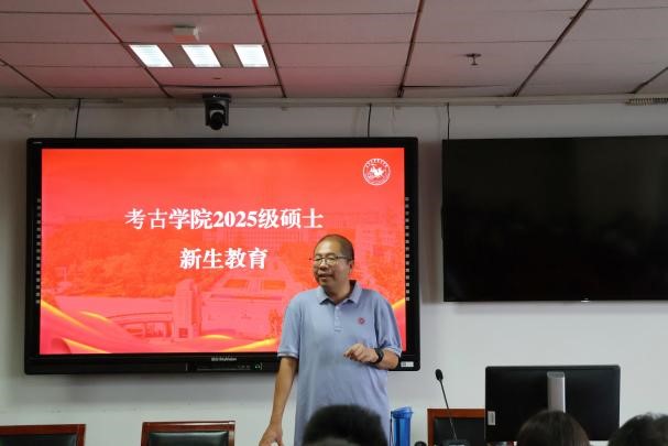 考古学院实验师岑卫带领考古学院2025级研究生新生参观了考古实验室。实验室负责人岑卫和资料室负责人张昀分别介绍了各实验室功能、设备及资料保存管理情况,使新生直观感知科技考古力量,增强了专业认同。