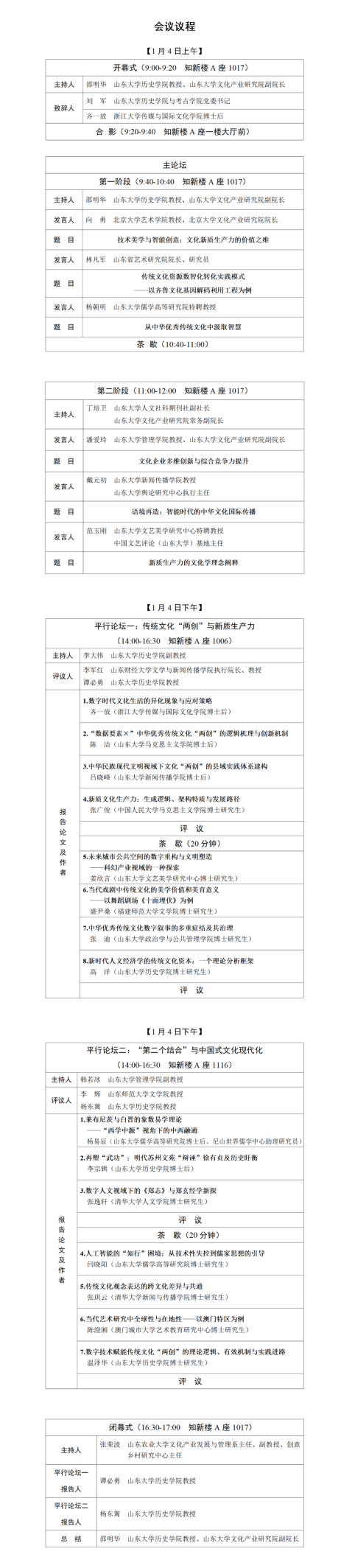 为持续深入学习贯彻习近平文化思想、推动中华优秀传统文化创造性转化与创新性发展,加强文化产业与中华优秀传统文化“两创”领域交叉创新研究交流,太阳成集团tyc122ccvip、太阳成tyc122cc集团文化产业研究院将于2025年1月4日,在太阳成tyc122cc集团中心校区举办“太阳成tyc122cc集团第二届文化产业与中华优秀传统文化‘两创’博士后交叉创新论坛”。论坛将以习近平文化思想为指导,为文化产业有效推动中华优秀传统文化“两创”搭建山大平台、贡献山大力量。现发布论坛议程如下。