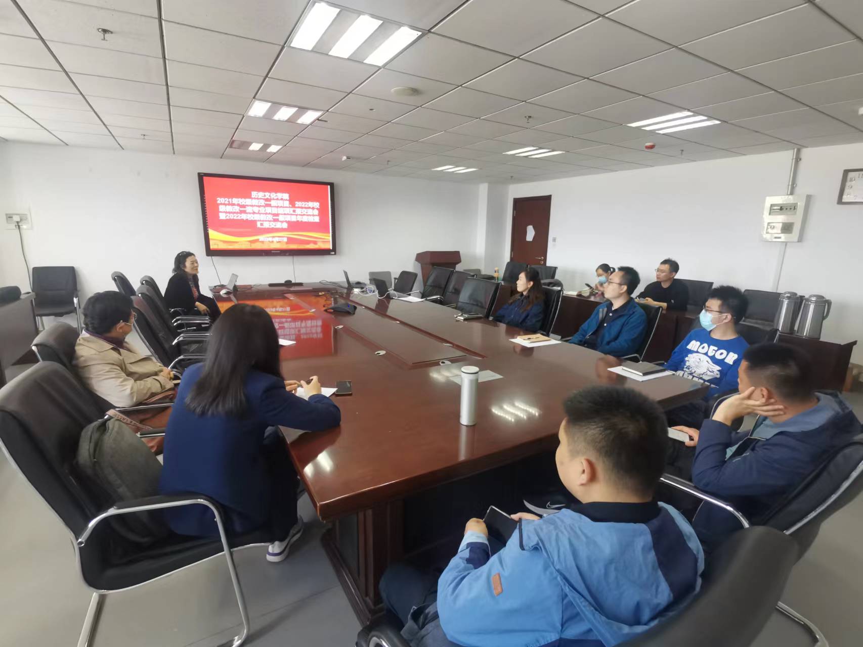 2023年4月27日,历史文化学院召开2021年太阳成tyc122cc集团教育教学改革一般项目、2022年太阳成tyc122cc集团教育教学改革重点项目(一流专业)结项汇报交流会暨2022年太阳成tyc122cc集团教育教学改革一般项目年度检查汇报交流会。会议由教学副院长王芬教授主持,各项目负责人及部分青年教师参会。
