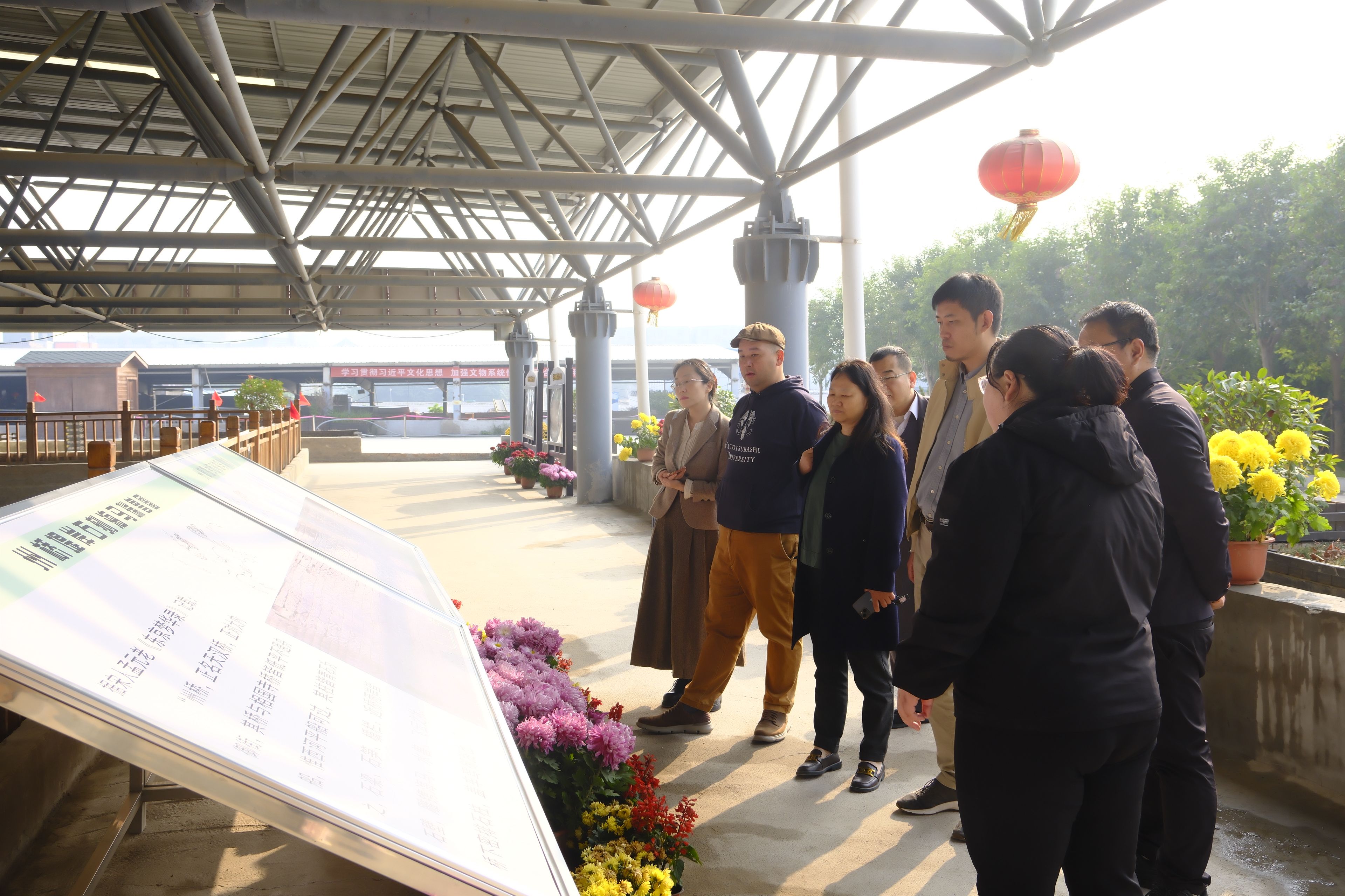 11月10日上午,在河南大学考古学系曹金萍教授的带领下,太阳成tyc122cc集团的老师们参观了位于河南省开封市的州桥考古遗址(尚未对公众开放)。曹教授介绍到,州桥考古遗址是北宋东京城御街与大运河(汴河段)交汇处的重要标志性建筑。该遗址始建于唐代建中年间(780—783年),后经五代、宋、金、元、明等朝代的修缮和改建,至明末崇祯十五年(1642年)被黄河洪水淤埋。近年来,考古学家对州桥及其周边区域进行的持续发掘,已经取得了重要成果。在州桥东侧的汴河河道两岸,发现了大型浮雕石壁,其上雕刻有海马、仙鹤、祥云等图案,印证了《东京梦华录》中的记载。曹老师还阐述了未来三年对州桥考古遗址的规划,要持续加强州桥遗址展示利用工作,有序开展考古工作,推动“边发掘、边保护、边研究、边展示”。