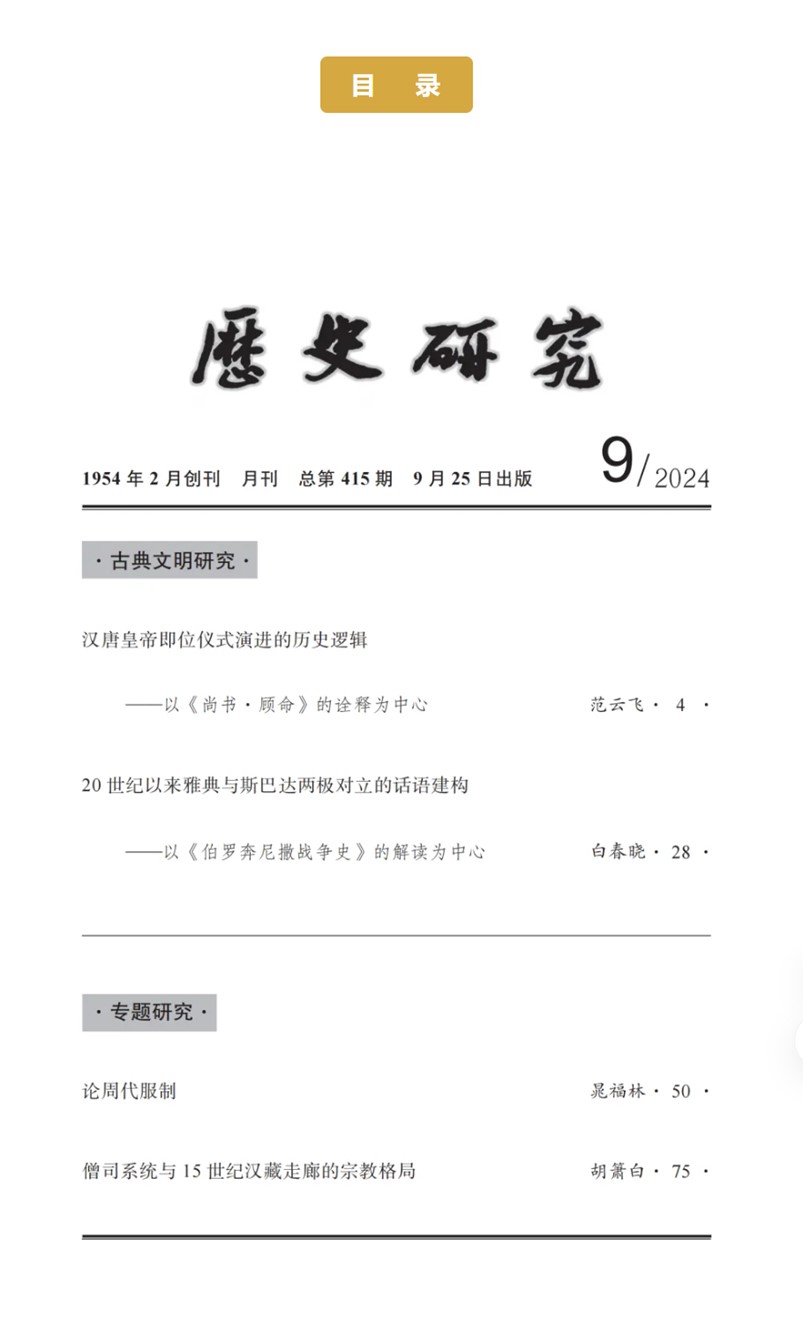 张晓宇副研究员在《历史研究》发表论文