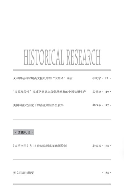 《义和团运动期间英文报纸中的“大屠杀”谣言》一文查考了当时中外报导之详情,再辅之以中外交涉档案和时人对此事的揭露、反思,较为详细地还原这一谣言的生成过程,并在此基础上审视了谣言对义和团运动、八国联军侵华历史进程的具体影响。